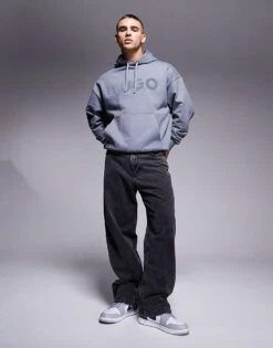 HUGO Red Oversized Ditchle Large Chest Logo Hoodie In Black For Men